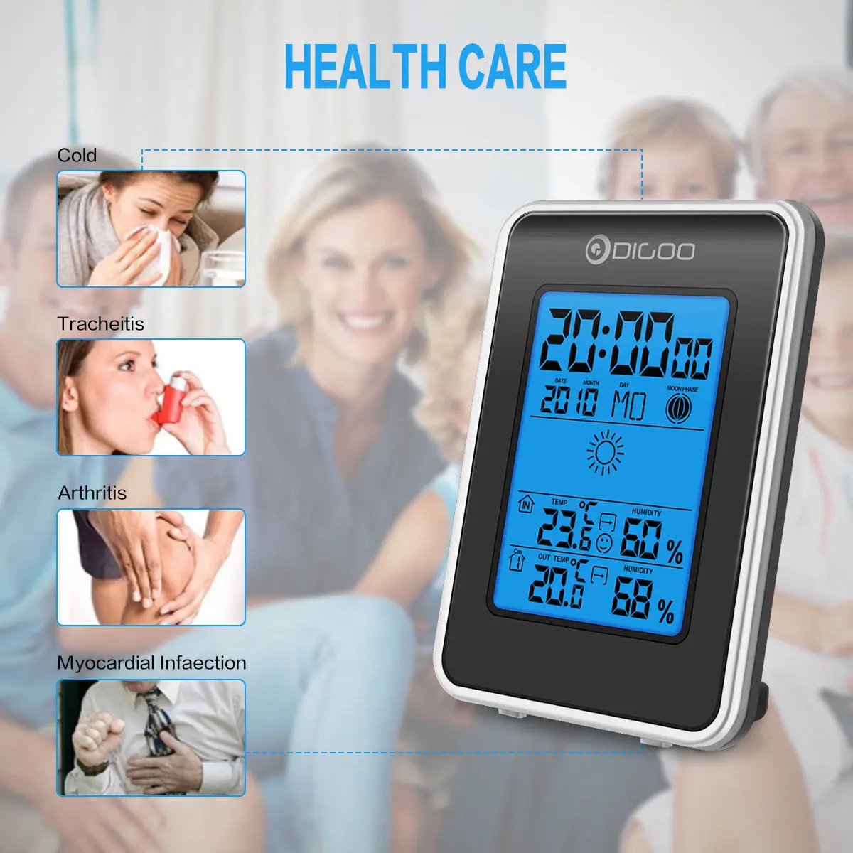 . [Скидка 52%] Купить Digoo DG TH1981 Погодная станция с синей подсветкой цифровой font b LCD b font гигрометр термометр Прогноз погоды Сенсор часы Цена Дешево.
